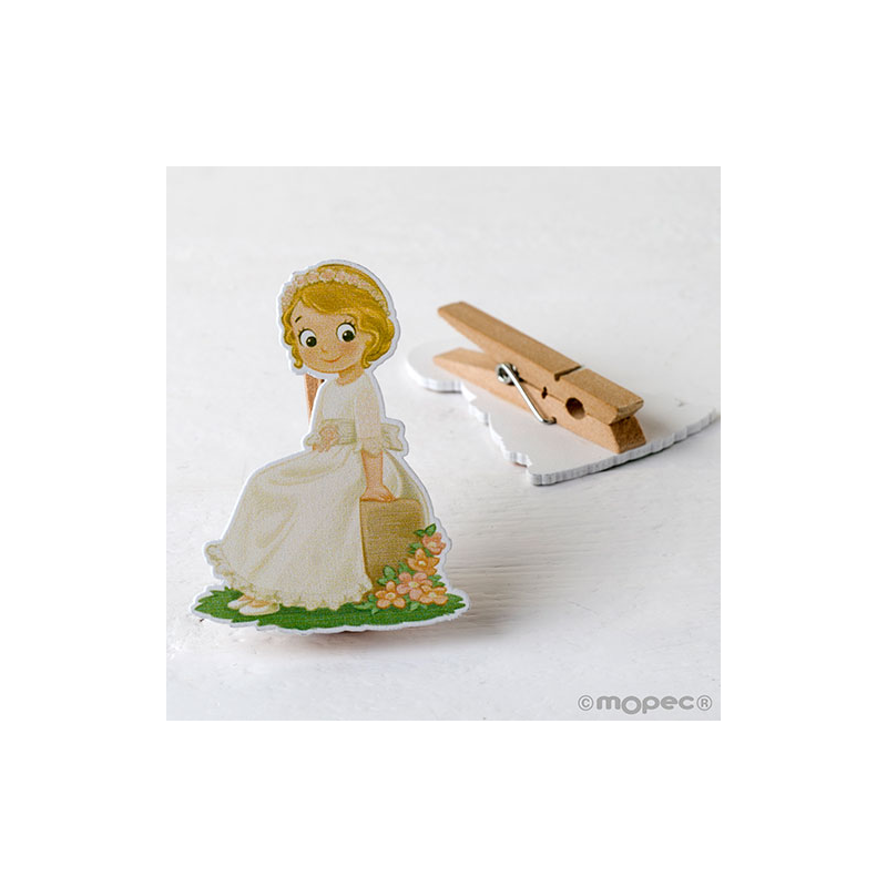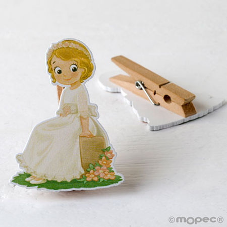Pinzas de madera de 3,5 cm, decoradas con una cruz. Son ideales para la personalización de cajas y bolsas con los recuerdos de la Primera Comunión. Un pequeño detalle para mejorar la presentación.