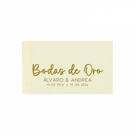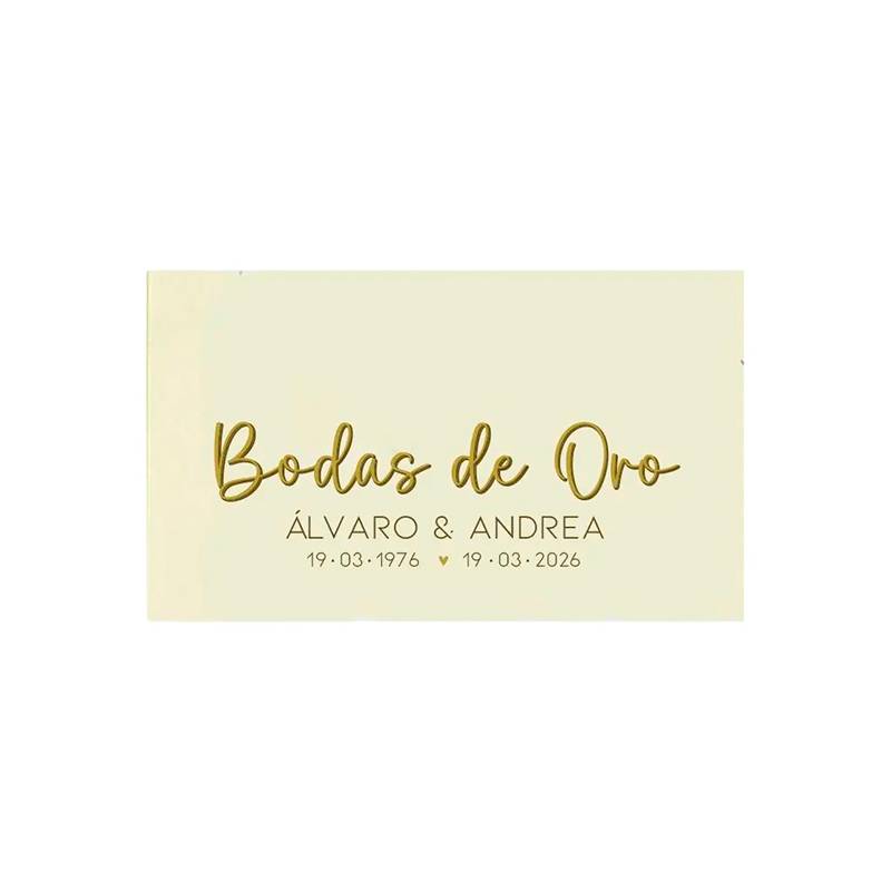 Tarjeta para personalizar los detalles en una celebración de las bodas de Oro.