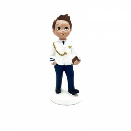Decore la tarta con este elegante niño de 13cm.con el traje tradicional de almirante en color blanco y pantalón azul. Es un modelo clásico que nunca pasa de moda.