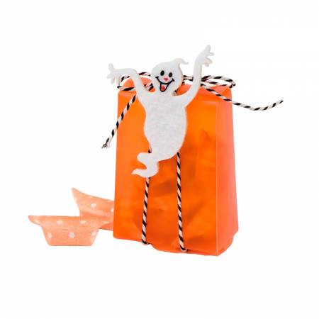 Estuche translucido naranja con 8 caramelos sabor a fruta, cerrado con un cordón y decorado con un fantasma de fieltro adhesivo. ¿Buscas algo original para una fiesta de Halloween y no quieres las mismas chuches de siempre? Este original estuche es sin duda el regalo perfecto para que la fiesta sea inolvidable. Además, los invitados pueden quedarse el adhesivo para utilizarlo más adelante como elemento decorativo y/o tener un recuerdo de la fiesta.