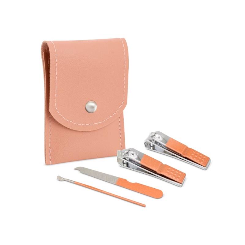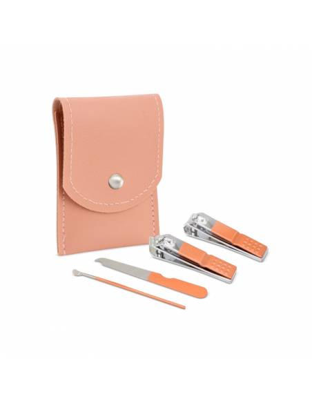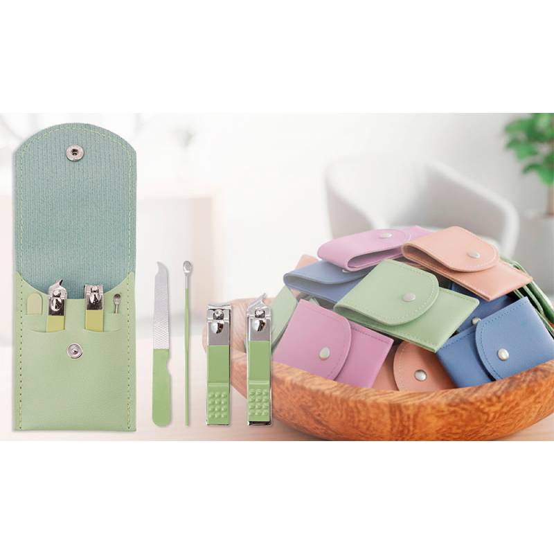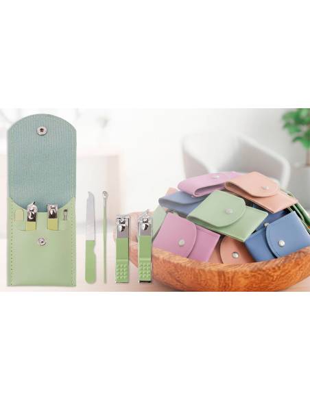 Kit de manicura con 4 herramientas esenciales para uñas. Precio por unidad. Disponible en 4 colores surtidos (se envía en color variado).