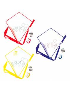 Regalos infantiles para eventos. Divertida botella para agua, con mochila a juego plegable. Se presenta en bolsa transparente, rafia a tono y tarjeta personalizada, nombre y fecha del evento.