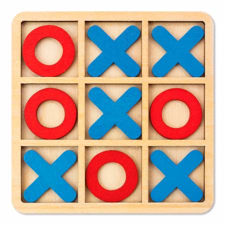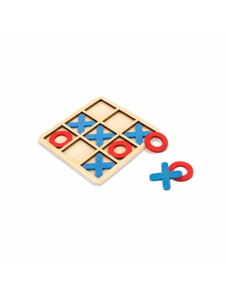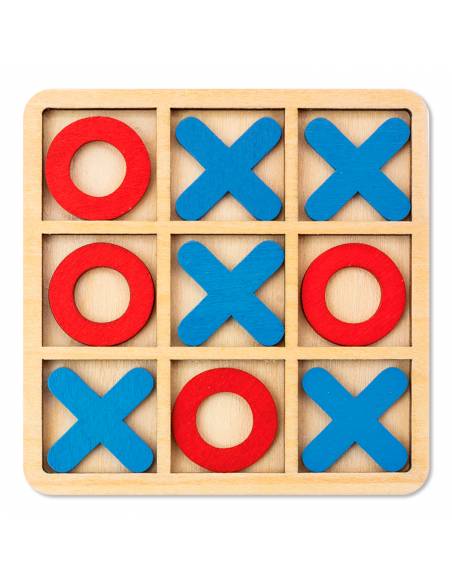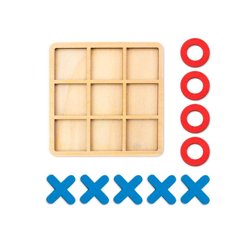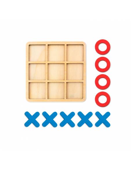 Juego de 3 en raya en madera con diseño sencillo y elegante, perfecto para entretenimiento familiar o como regalo original. Medidas: 9 × 9 × 0,4 cm.