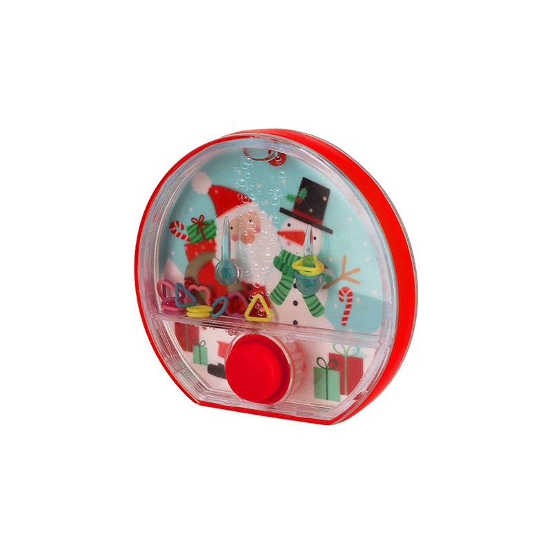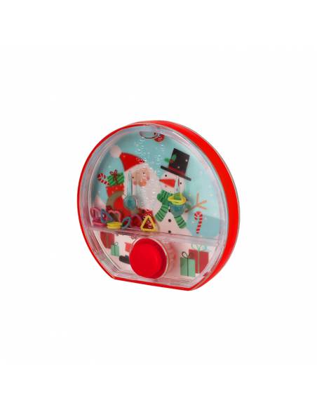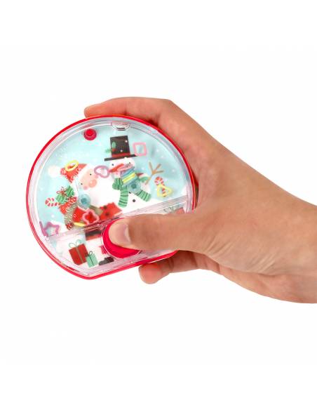 Juego de agua con diseño navideño. Un clásico pasatiempo, ideal para ejercitar la destreza y la coordinación.