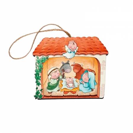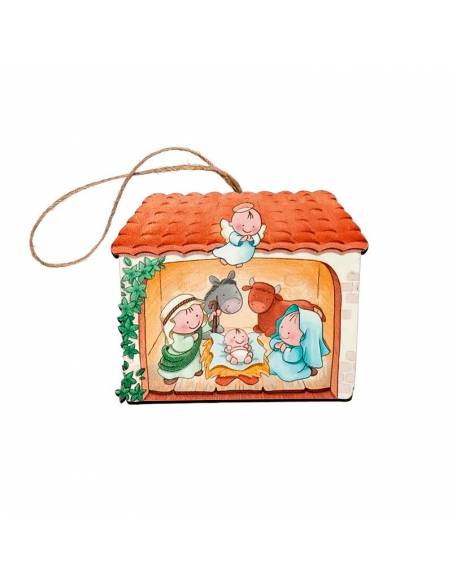 Encantador nacimiento de madera pintado a color con cordel para colgar. Un detalle con espíritu navideño ideal para regalar o decorar en estas fechas tan especiales.