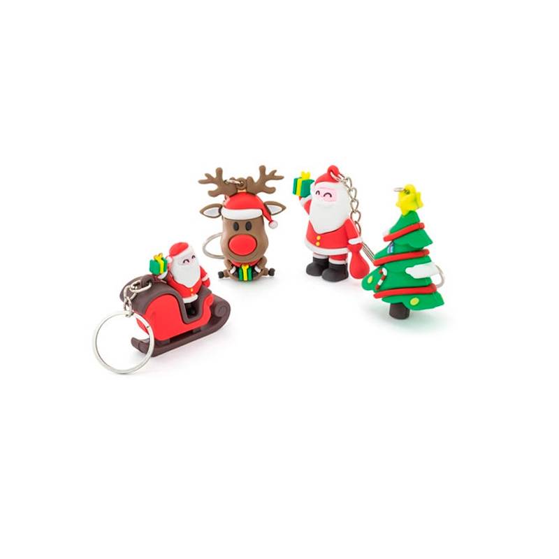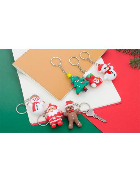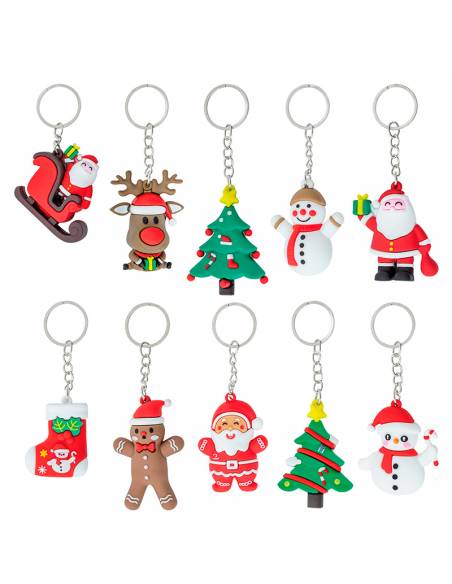 Pack de 10 llaveros navideños, fabricados en PVC y aluminio con diseños 3D festivos. Perfectos para regalos infantiles, en cumpleaños, fiestas, colegios...
