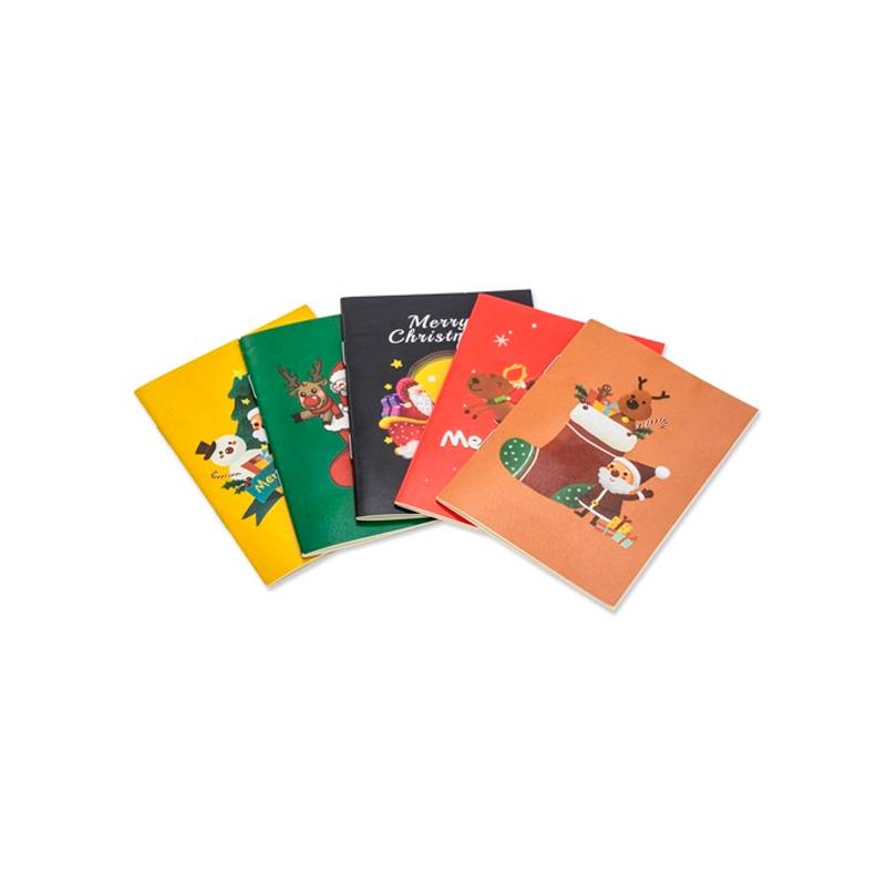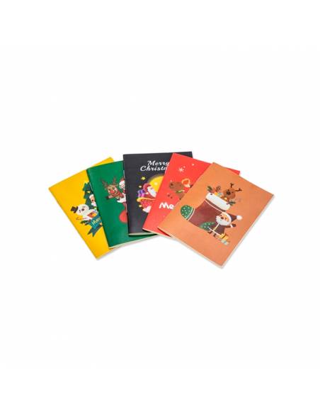 Este pack de 5 libretas navideñas incluye cinco modelos diferentes con diseños infantiles de temporada: Papá Noel, renos, muñecos de nieve y más.