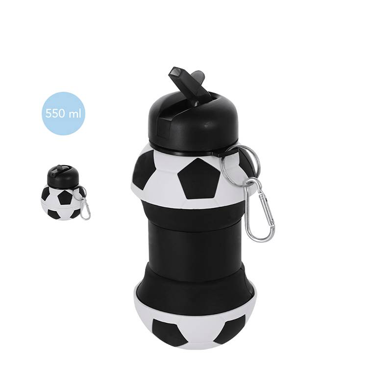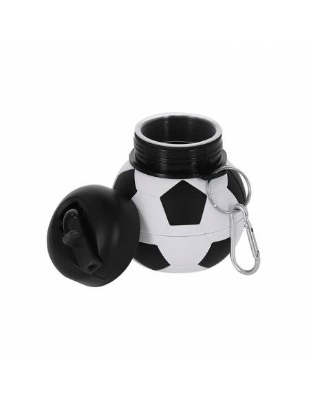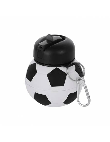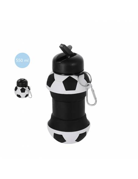 Botella de silicona plegable con diseño de balón de fútbol, 550 ml, con boquilla, mosquetón y libre de BPA. Ligera, cómoda y perfecta para niños y actividades deportivas.