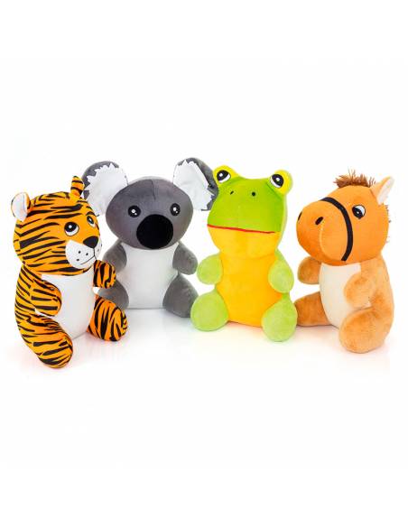 Divertidos peluches infantiles fabricados en felpa. Se sirven en 4 modelos surtidos: Koala, Tigre, Caballo y Rana. El precio es para la unidad. Es el detalle perfecto para regalar en cualquier celebración a los mas peques.